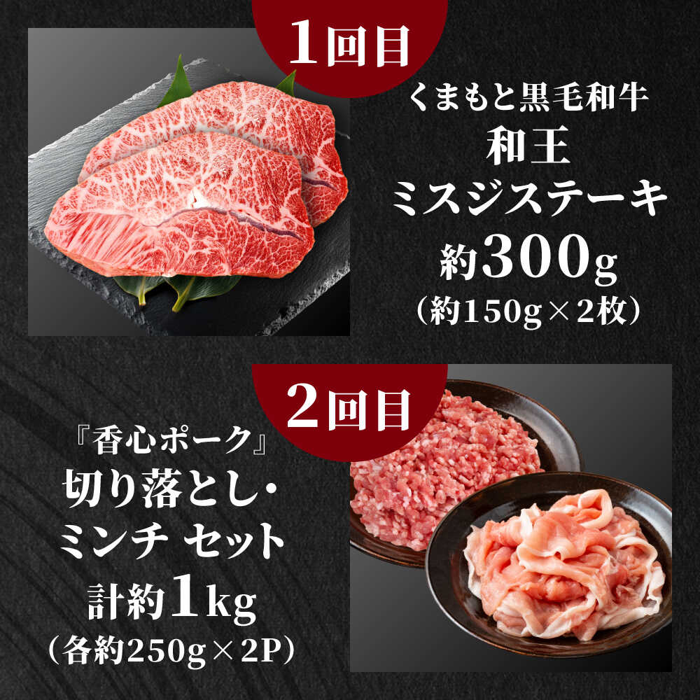 - 【ふるさと納税】【全6回定期便】合志市食卓応援定期便[AYZZ005] 牛肉 豚肉 馬刺し 鶏肉 黒毛和牛 あか牛 香心ポーク 天草大王 ミスジ ステーキ 合志 熊本 九州 国産 冷凍