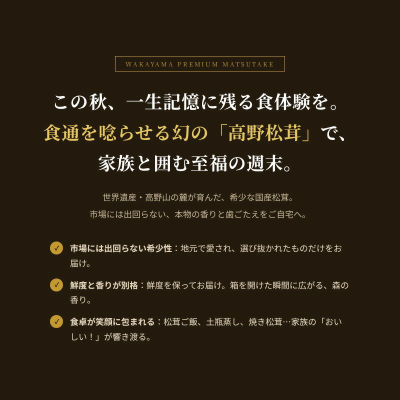 - 香り・歯応え・味ともに最高級!希少な国産松茸「高野松茸」200g【化粧箱入】【2024年10月上旬~10月下旬発送】