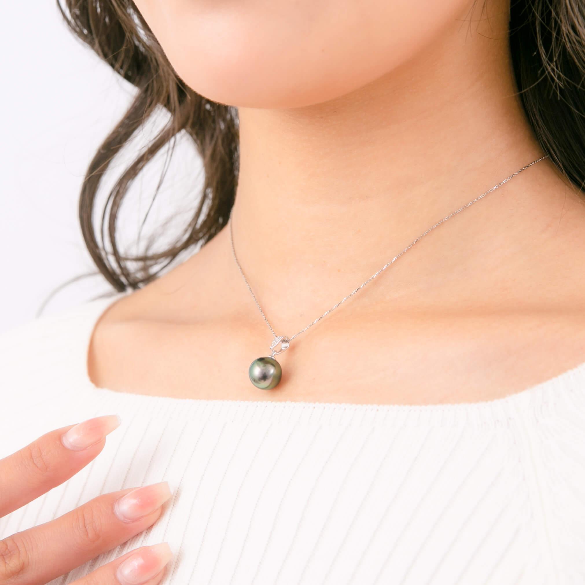 - 【ふるさと納税】【星涼し】ブラックパール(タヒチ 黒蝶真珠) 10mm セミラウンド ダイヤモンド ペンダントトップ Pt900 プラチナ