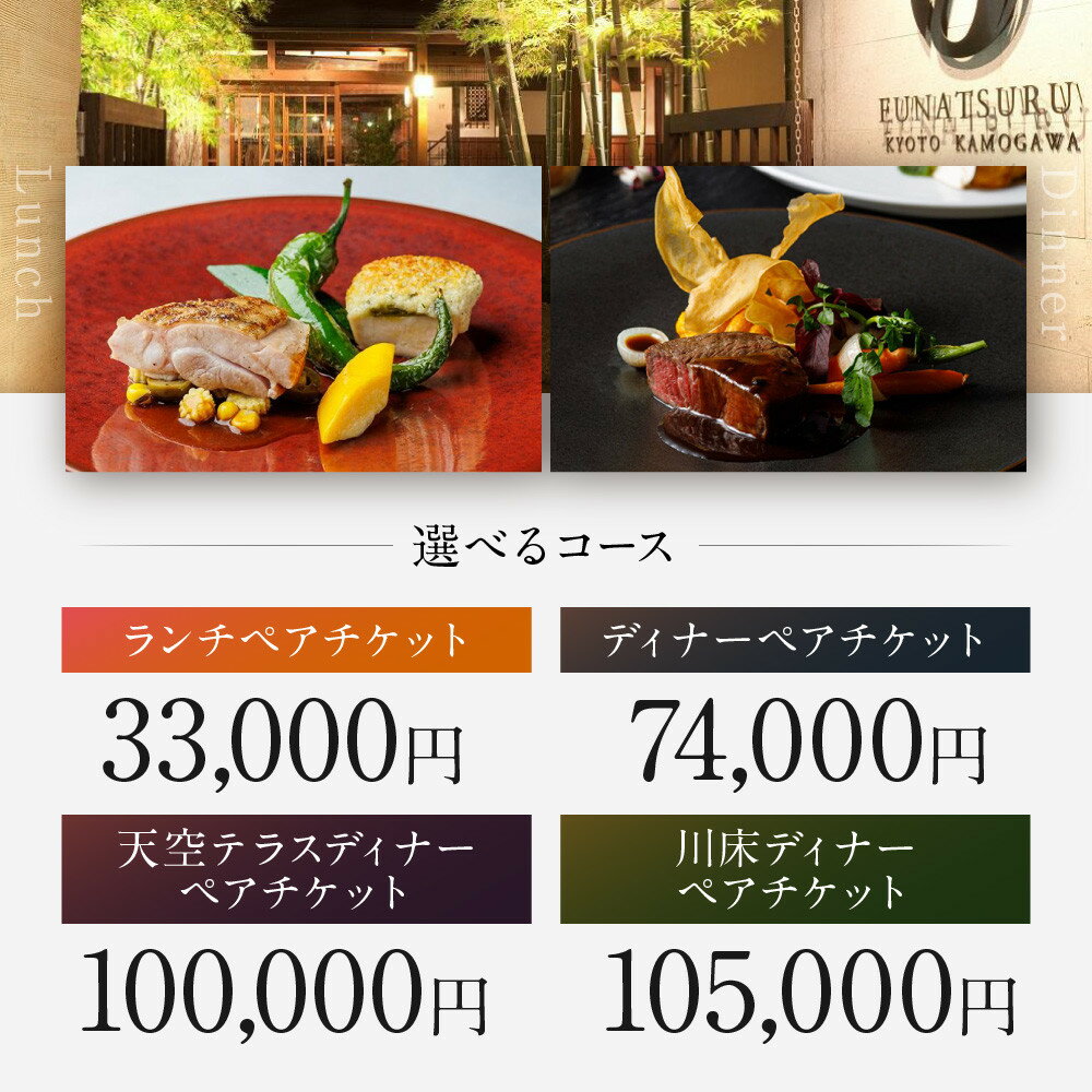 【ふるさと納税】レストラン ルアン ペア食事券<選べるコース>|京都木屋町 鮒鶴 人気リゾート フレンチ 食事券[ フレンチ ランチ or ディナー コース料理 食事券 川床 テラス 2人 美食 グルメ 人気 おすすめ 記念 お祝い ホテル 旅行 観光 食事 ふるさと納税 ]