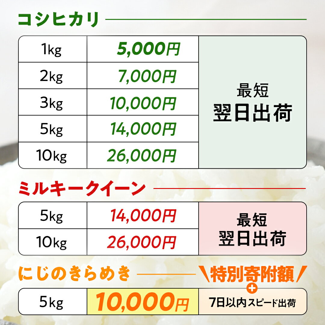 - 【ふるさと納税】\ 選べる3品種 /★今だけ 特別寄附額 ★ 最短翌日 ~7日以内出荷 コシヒカリ ミルキークイーン 五つ星お米マイスター監修 1kg / 2kg / /3kg / 5kg / 10kg 生活応援 にじのきらめき 茨城県つくばみらい市産 | 米 コメ 単一米 5000 10000 コスパ 高評価