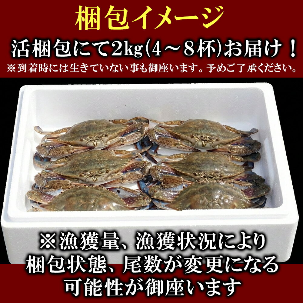 【ふるさと納税】 先行予約 (2026年10月~発送) 活 梱包 ワタリガニ 2kg (約5〜8杯) 七ヶ浜産 かに カニ 蟹 渡り蟹 ガザミ 旬 新鮮 パスタ ボイル 海鮮 ケジャン 味噌 蟹肉 鍋 おつまみ 日本酒 グルメ 高級 国産 ごはん 宮城県 七ヶ浜町 |nn-wg02-R8