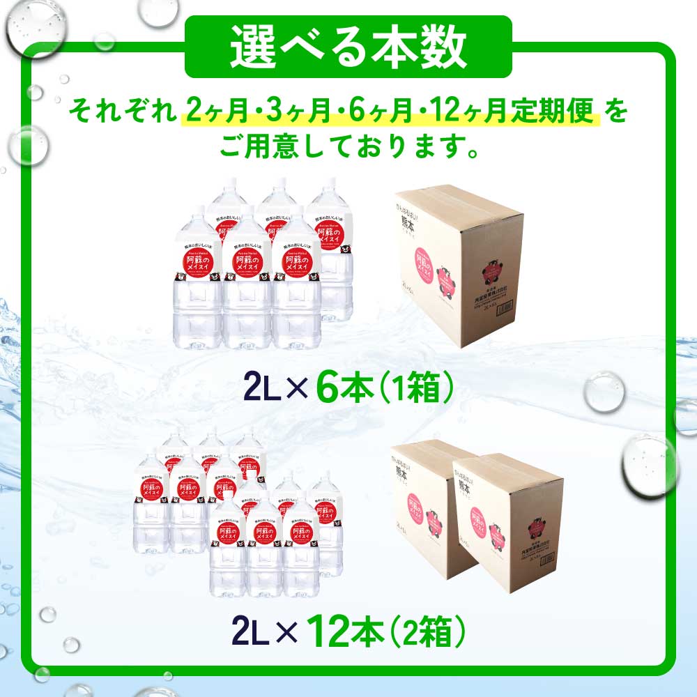 【ふるさと納税】熊本のおいしいお水 阿蘇のメイスイ【選べる本数】2L×6本 (1ケース) または 12本(2ケース) 定期便あり 2〜12ヶ月 2リットル ミネラルウォーター 飲料 軟水 水 みず 天然水 備蓄 備蓄水 防災 健康 美容 アウトドア 熊本県 宇城市 丸富産業