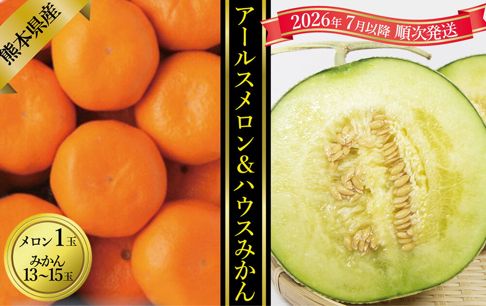 - 【ふるさと納税】ハウスみかん(13~15玉)&アールスメロン(1玉)セット メロン めろん みかん ミカン 蜜柑 くだもの 果物 果実 フルーツ デザート 自宅用 贈答 贈り物 ギフト 冷蔵 熊本県産 国産 九州 熊本県 送料無料 【2026年7月上旬発送開始】