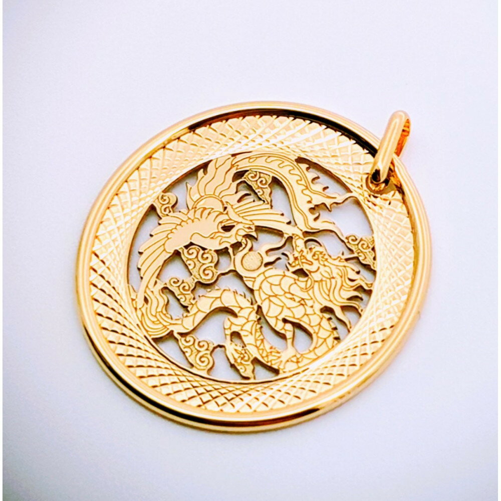 - 【ふるさと納税】【18金イエローゴールドネックレス 龍鳳呈祥ペンダントトップ グリームカット長小豆0.25 45cm】富山県 富山市 贈り物 おすすめ ギフト 記念