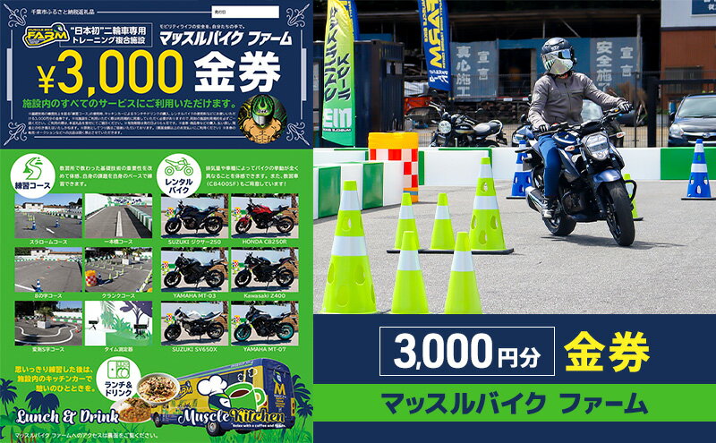 - 【ふるさと納税】マッスルバイク ファーム 3,000円分金券 チケット 使用料 施設利用料 複合施設 バイク 練習 基礎技術 レンタルバイク キッチンカー 日本初 千葉市 千葉県