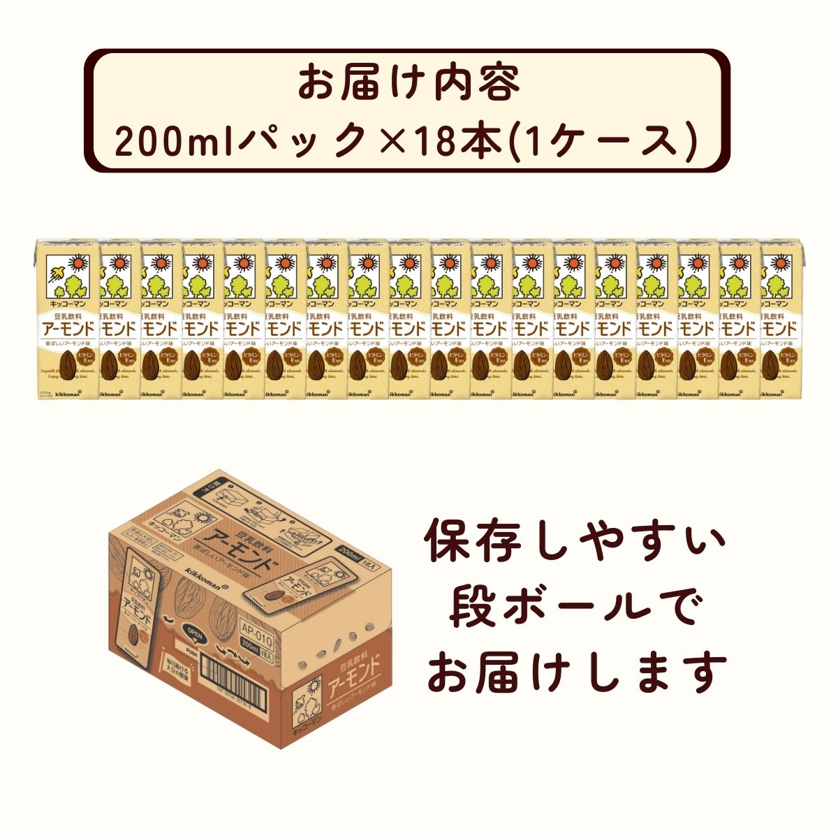 - 【ふるさと納税】キッコーマン 豆乳飲料 アーモンド 200ml ×18本 | 豆乳 飲料 アーモンド 大豆 ソイ パック 飲みきりサイズ 1ケース キッコーマンソイフーズ 株式会社翔栄通商 埼玉県 狭山市