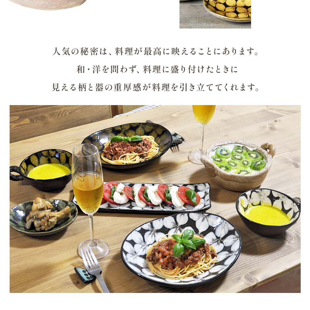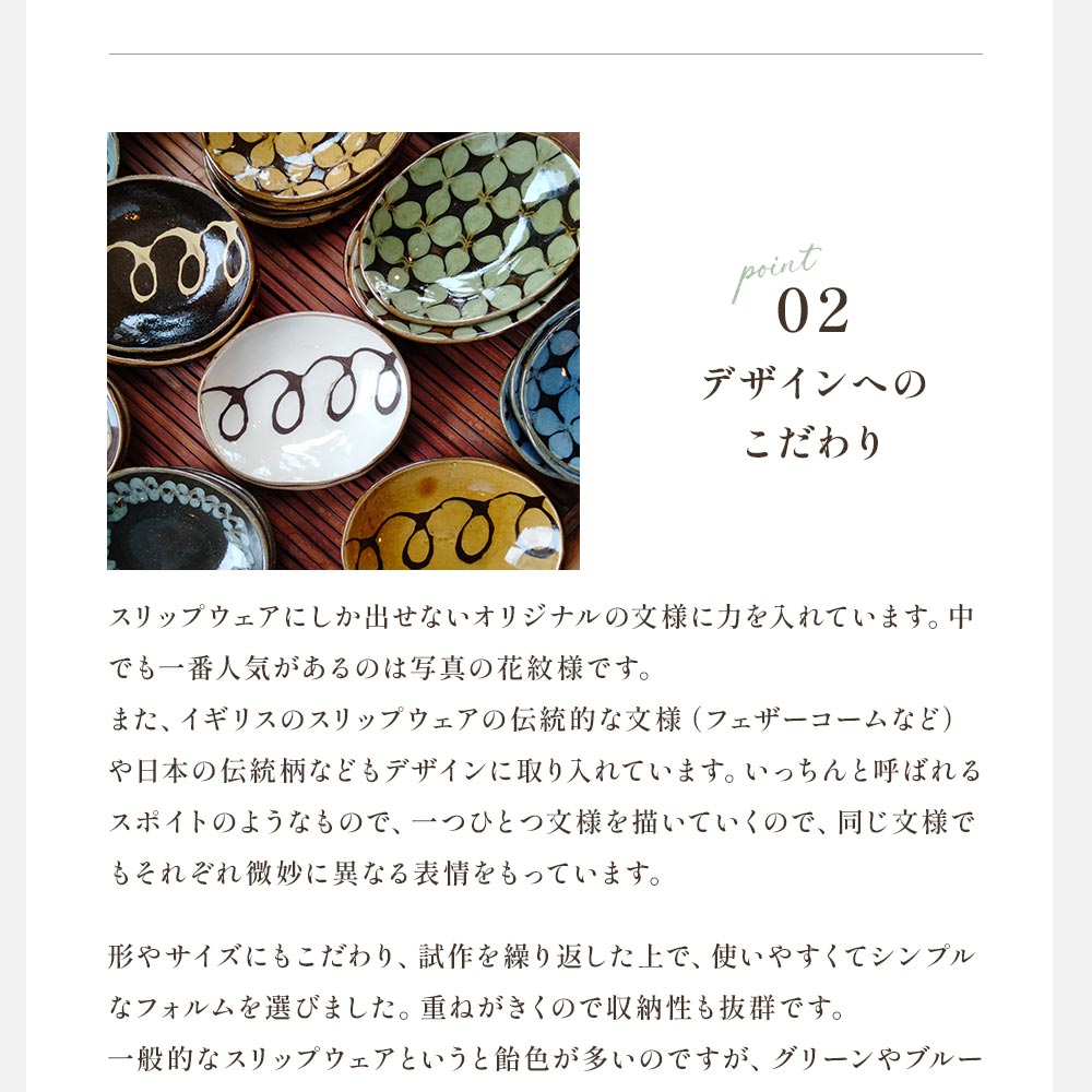 - <スリップウェアの小判皿 4枚組> 陶器 食器【A-1101-kr】【生楽陶苑】