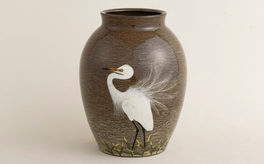〈現川焼臥牛窯〉白鷺文花瓶