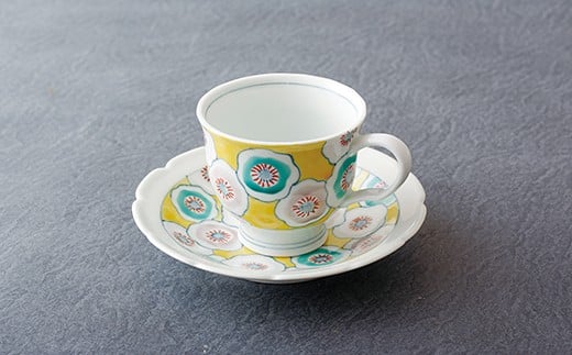 - 〈嘉泉窯〉一葉花ざかりコーヒー碗皿(黄)
