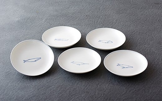 〈光雲窯〉絵変わり鯨豆皿5枚組