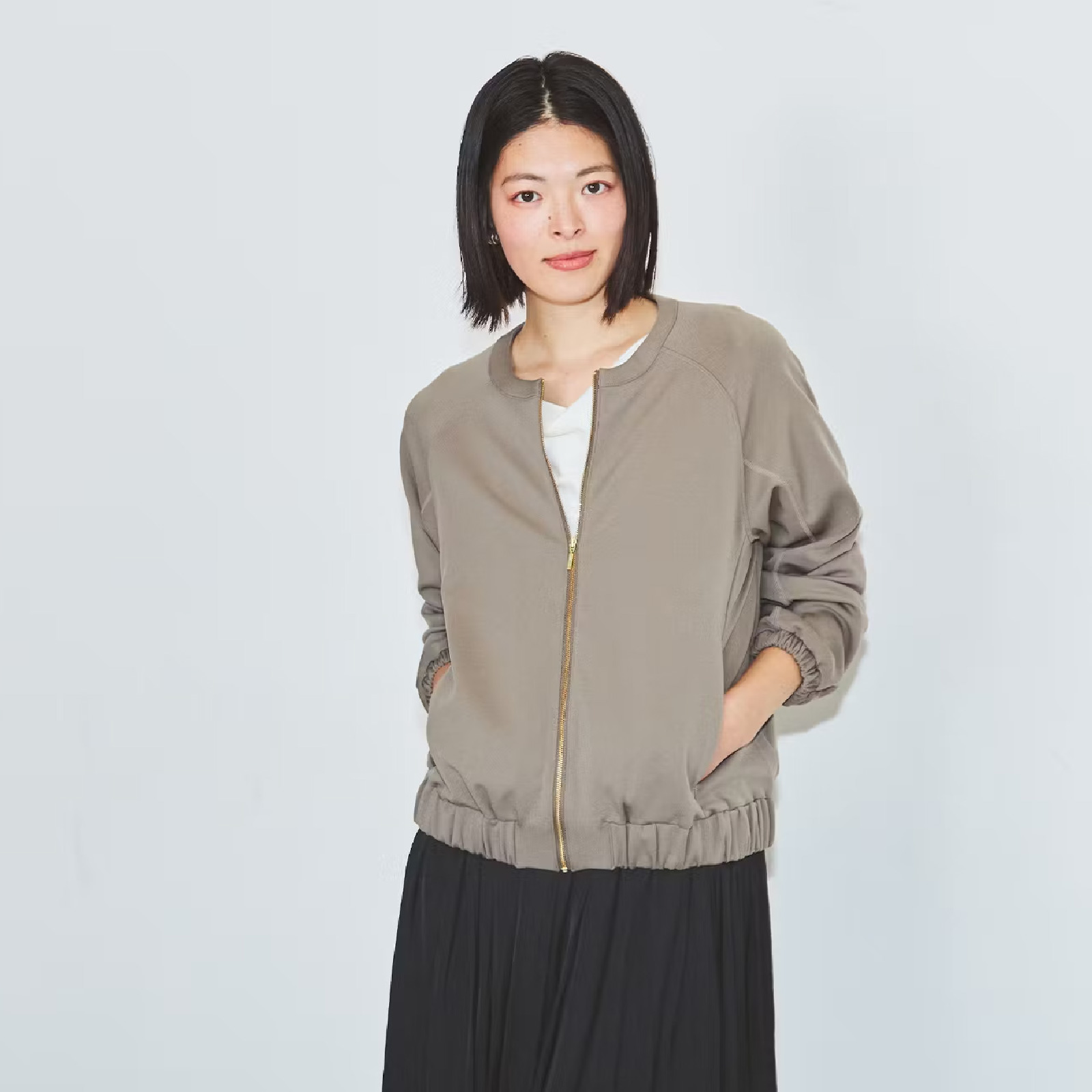 - 【ファクトリエ】エアーノーカラーブルゾン(レディース)ブラック ※備考欄へ希望のサイズをご記入ください。 / [D-182001_02]