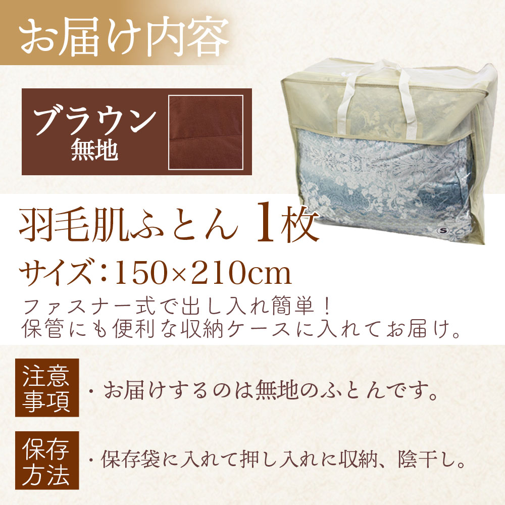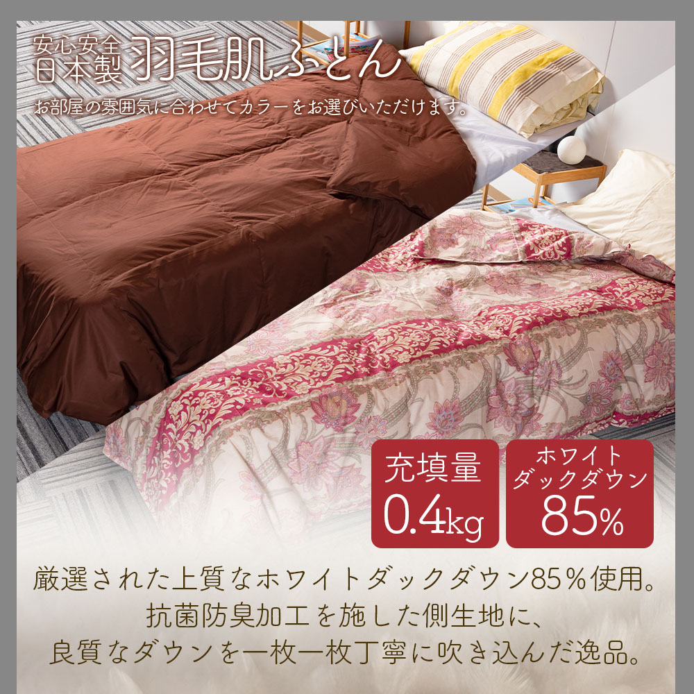 - <羽毛肌布団 ダウンケット ホワイトダックダウン85%フェザー15% 充填量 0.4kg(ブラウン(無地))>日本製 シングルサイズ【MI167-bs】【株式会社ベストライフ】