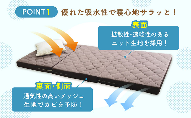 【マイナビだけの限定寄附額!】アキレス ぷちスリム セミシングル ブルー 厚さ12cm 高反発マットレス 三つ折り 折りたたみ コンパクト 吸水速乾 カバー 洗濯 お昼寝 ごろ寝 マット 車中泊 幅80 一人暮らし 子供