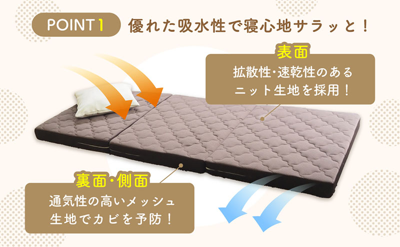 【マイナビだけの限定寄附額!】アキレス ぷちスリム セミシングル ベージュ 厚さ8cm 高反発マットレス 三つ折り 折りたたみ コンパクト 吸水速乾 カバー 洗濯 お昼寝 ごろ寝 マット 車中泊 幅80 一人暮らし 子供