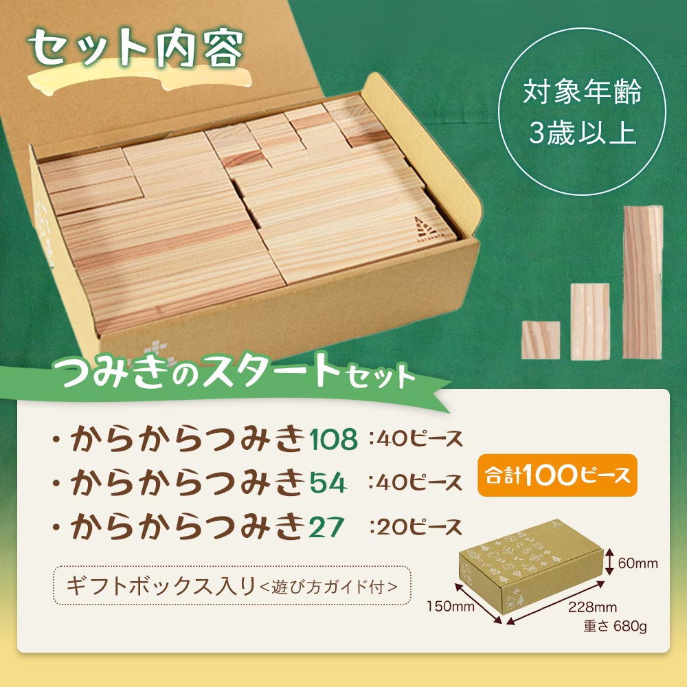 <つみきのスタートセット からからつみき3種類100PギフトBOX入>《宮崎県産杉使用》木のおもちゃ 知育玩具 子供 おもちゃ 積み木 男の子 女の子 子ども プレゼント 4歳 5歳 宮崎県産 国産 杉 安心 安全 ベビー向け 誕生日 贈り物 お祝い 出産祝い【MI245-bo】【boofoowoo】