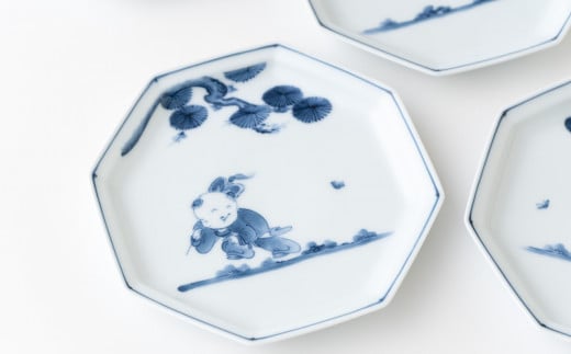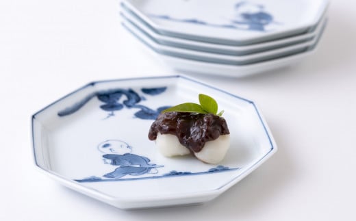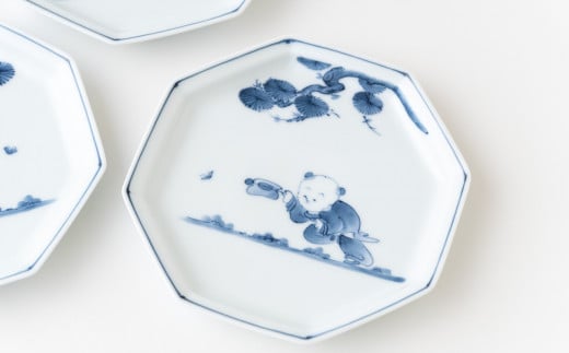 - 〈平戸松山窯〉創作唐子八角5寸皿5枚揃