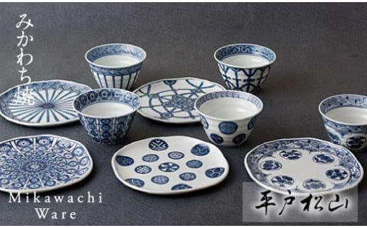 〈平戸松山窯〉創作染付多用小鉢とタタラ銘々皿5客