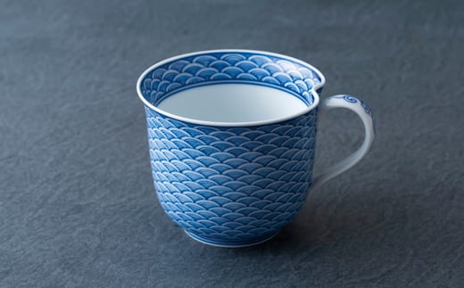 〈平戸松山窯〉平戸青海波一方押しマグカップ