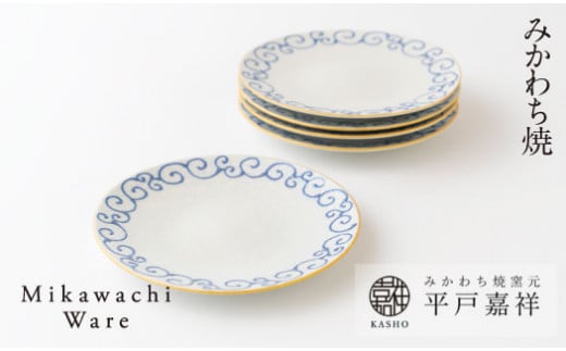 〈平戸嘉祥窯〉パール唐草取皿(青)5枚セット