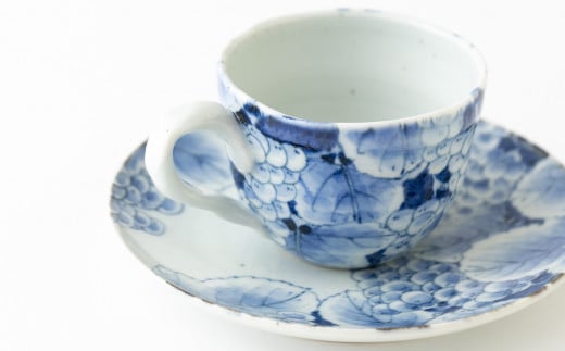 - 〈玉峰窯〉葡萄絵コーヒー碗皿