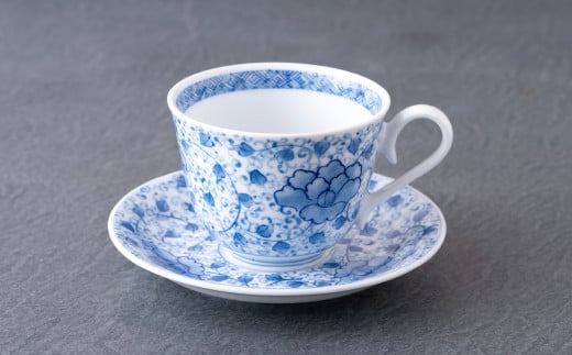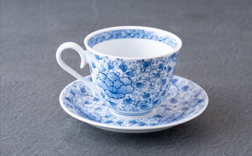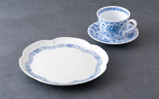 〈嘉泉窯〉総手描ボタン唐草コーヒー碗皿花割八寸皿
