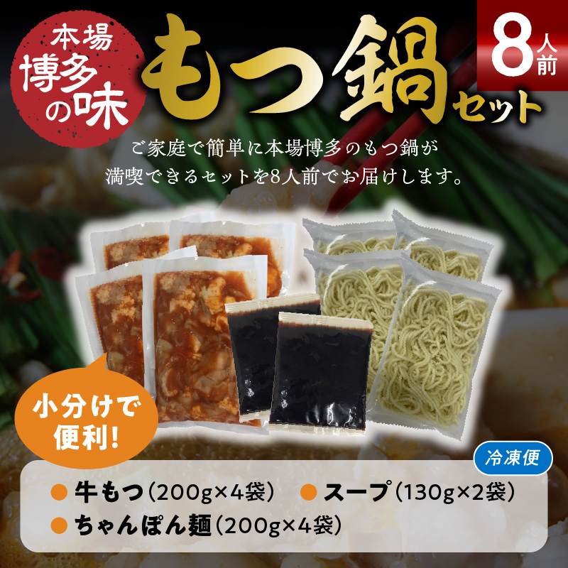 - 本場博多もつ鍋8人前 特製タレ漬けホルモン・あごだし醤油味(ちゃんぽん麺付き) KP5805