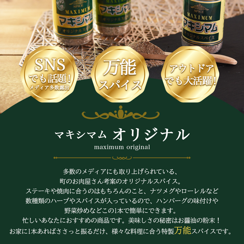 - <マキシマム オリジナル 4本> 140g オリジナル スパイス 万能 なんにでも合う 炒め物 焼き肉 焼肉 サラダ スープ 炒飯 調味料 かけるだけ 簡単 調理 お手軽 プレゼント 家庭用 魔法のスパイス 【MI521-nk】【中村食肉】