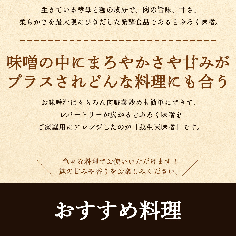 <我生天味噌 2個>300g 選べる 内容量 個数 みそ ミソ 調味料 酵母 どぶろく味噌 ドブロク 米 料理 お味噌汁 パック 発酵食品 まろやか マイルド 風味 旨味 加工食品 和食 和 麹 こうじ アレンジ味噌 こだわり 麦みそ【MI576-gs】【我生庵】