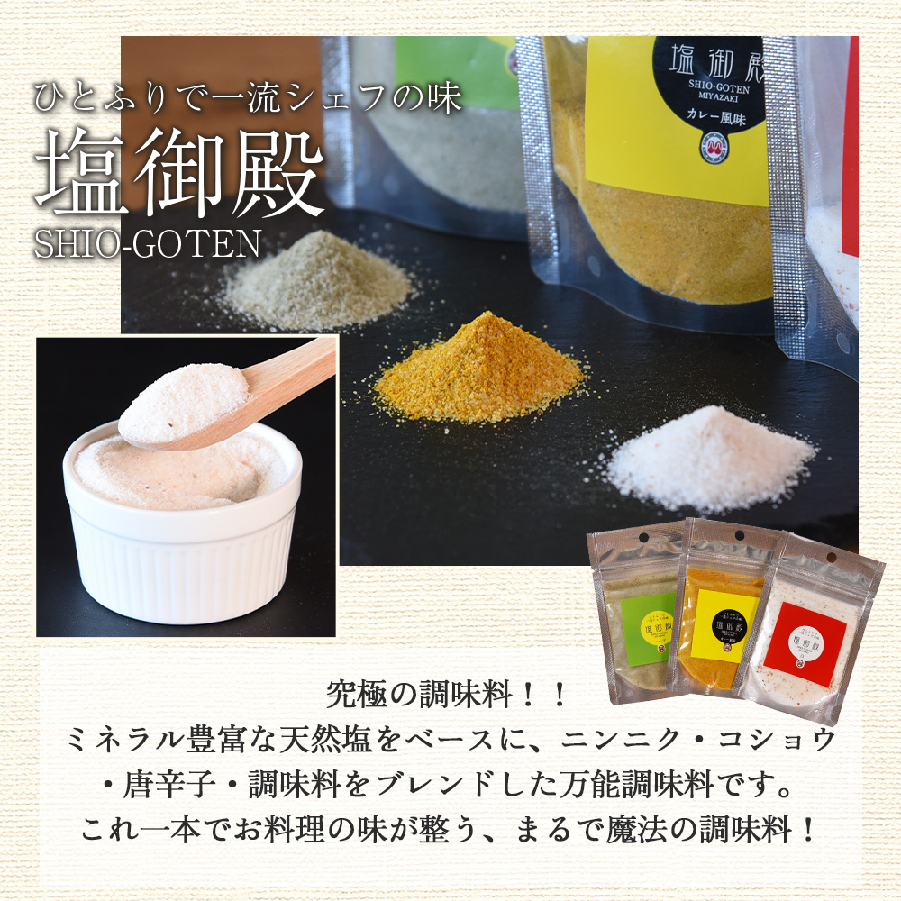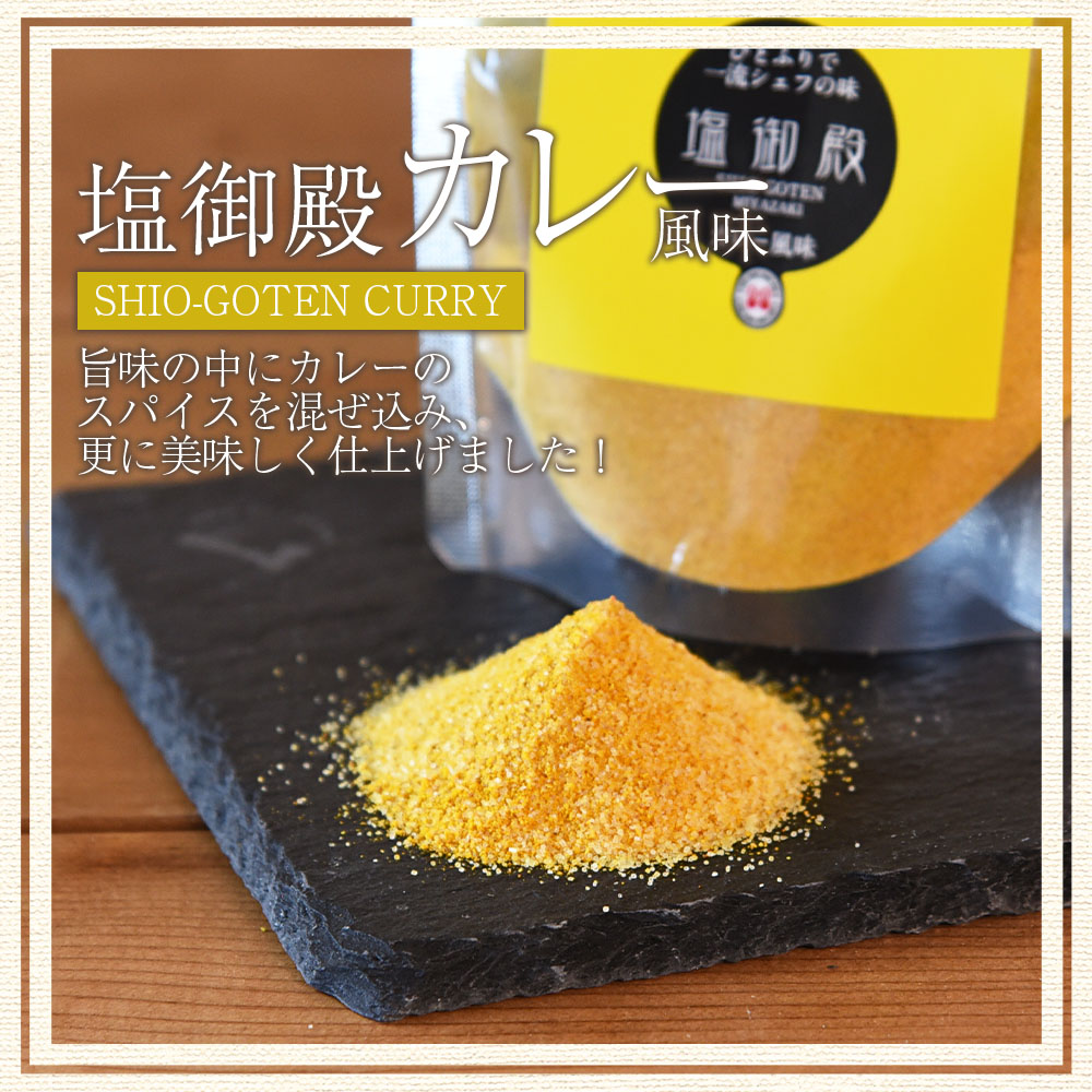 <塩御殿 カレー風味 1袋> 調味料 しお スパイス 料理 アレンジ 天然塩 万能調味料 ばんのう お試し かける 混ぜる 調理 味付け ニンニク にんにく コショウ 胡椒 唐辛子 旨味 プロ 一流 シェフの味【MI430-gs】【我生庵】