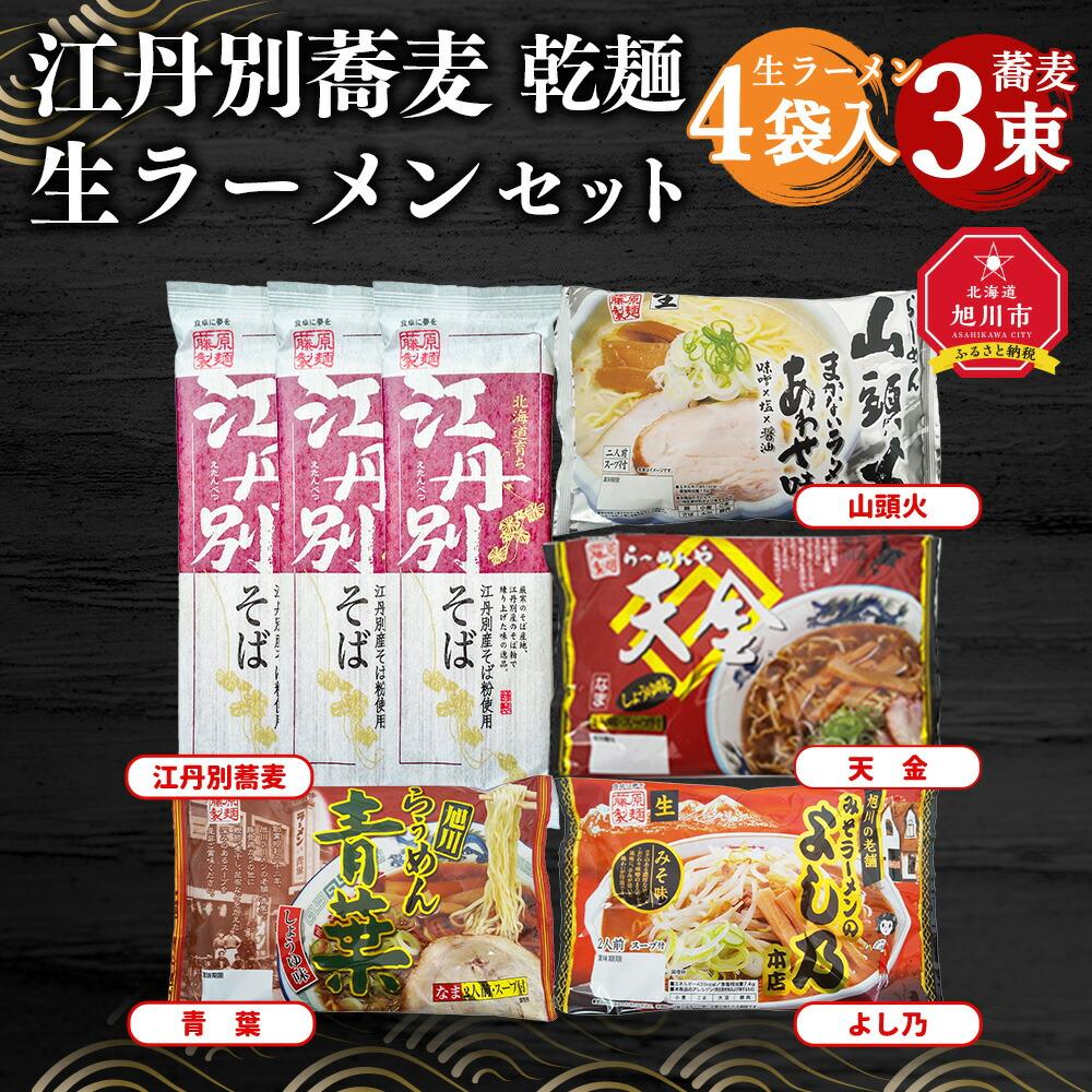 江丹別蕎麦 乾麺 3束・生ラーメンセット (山頭火あわせ,天金醤油,青葉,よし乃)_01855