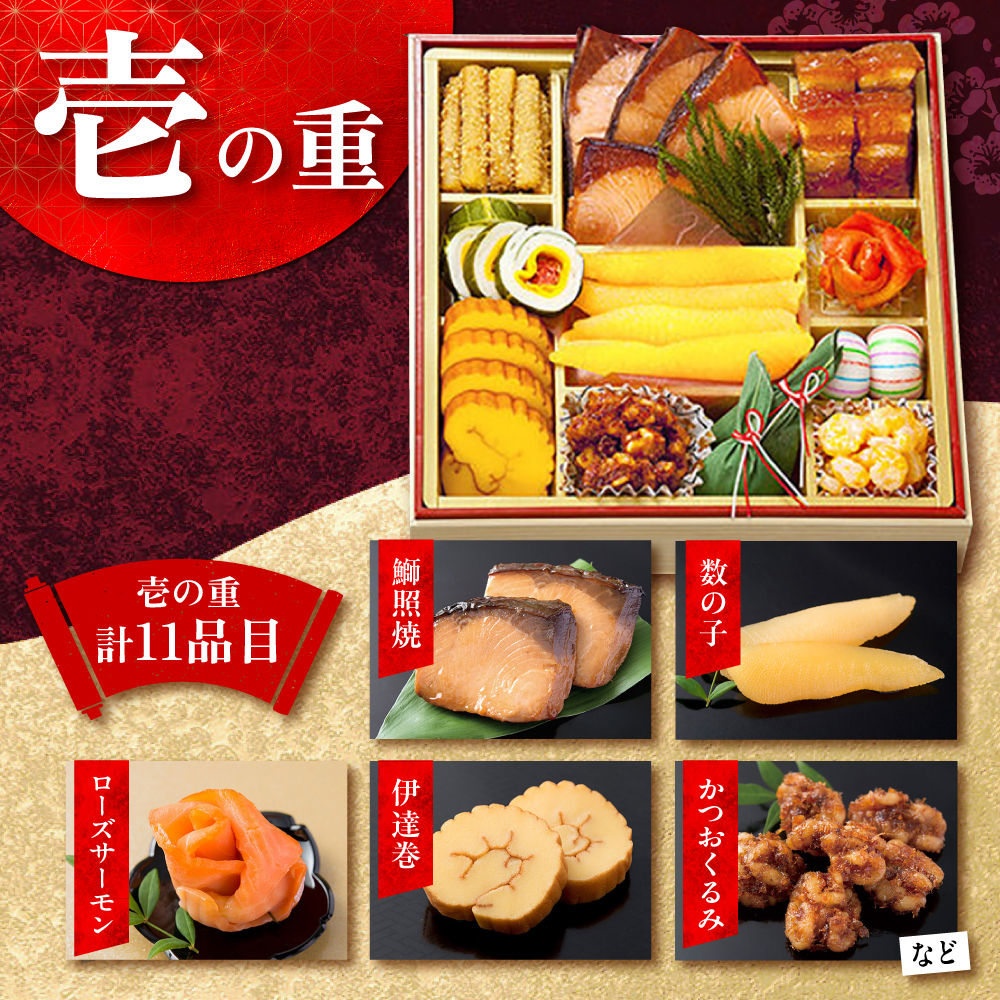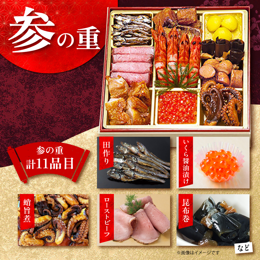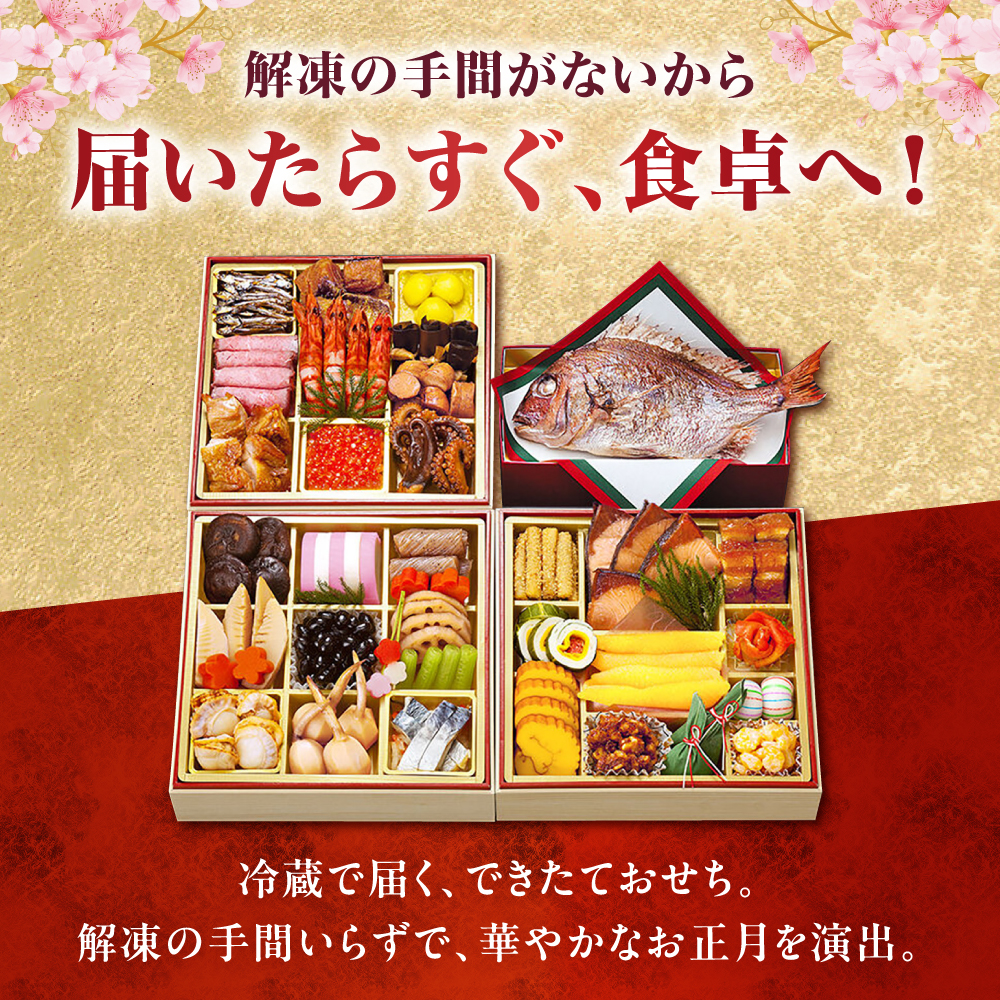 - 【12/31お届け限定】一冨士おせち 鶴亀 和風 3段重+焼き鯛 37品 おせち お節 正月 お雑煮 数の子 おせち お節 料理 新春 正月 数の子 海老 冷蔵 大阪府高槻市/一冨士ケータリング[AOCN004]