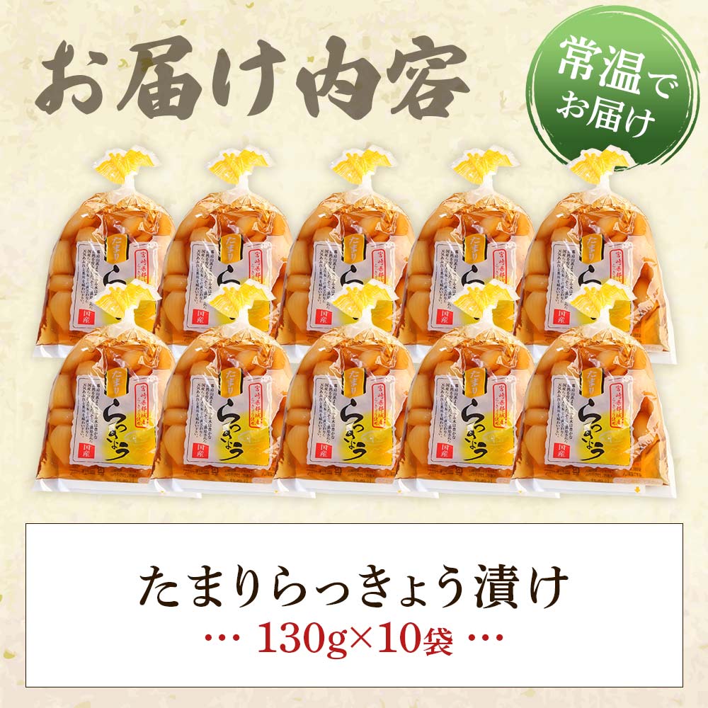 <純国産たまりらっきょう1.3kg(130g×10P)>らつきょう ラッキョウ 辣韭 おつまみ 肴 ご飯のおとも 野菜 旬 漬物 おつけもの シャキシャキ 食感 歯ごたえ 晩酌 料理 アレンジ タルタルソース 国産 宮崎県産 九州産【MI012-ko】【株式会社上沖産業】