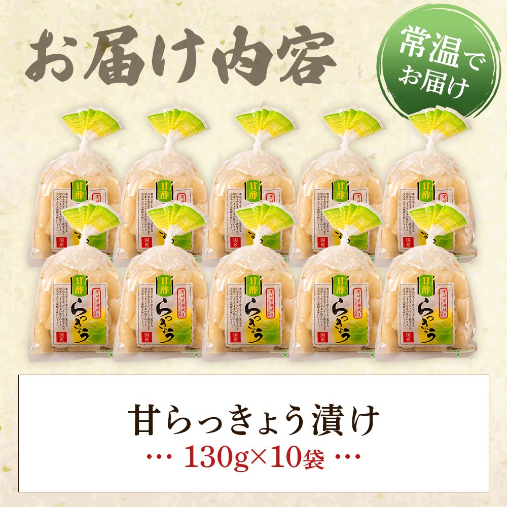 <純国産甘らっきょう 1.3kg(130g×10P)>らつきょう ラッキョウ 辣韭 おつまみ 肴 ご飯のおとも お酒のお供 野菜 旬 漬物 おつけもの シャキシャキ 食感 歯ごたえ やみつき パック 漬け込み 国産 宮崎県産 九州産【MI014-ko】【株式会社上沖産業】