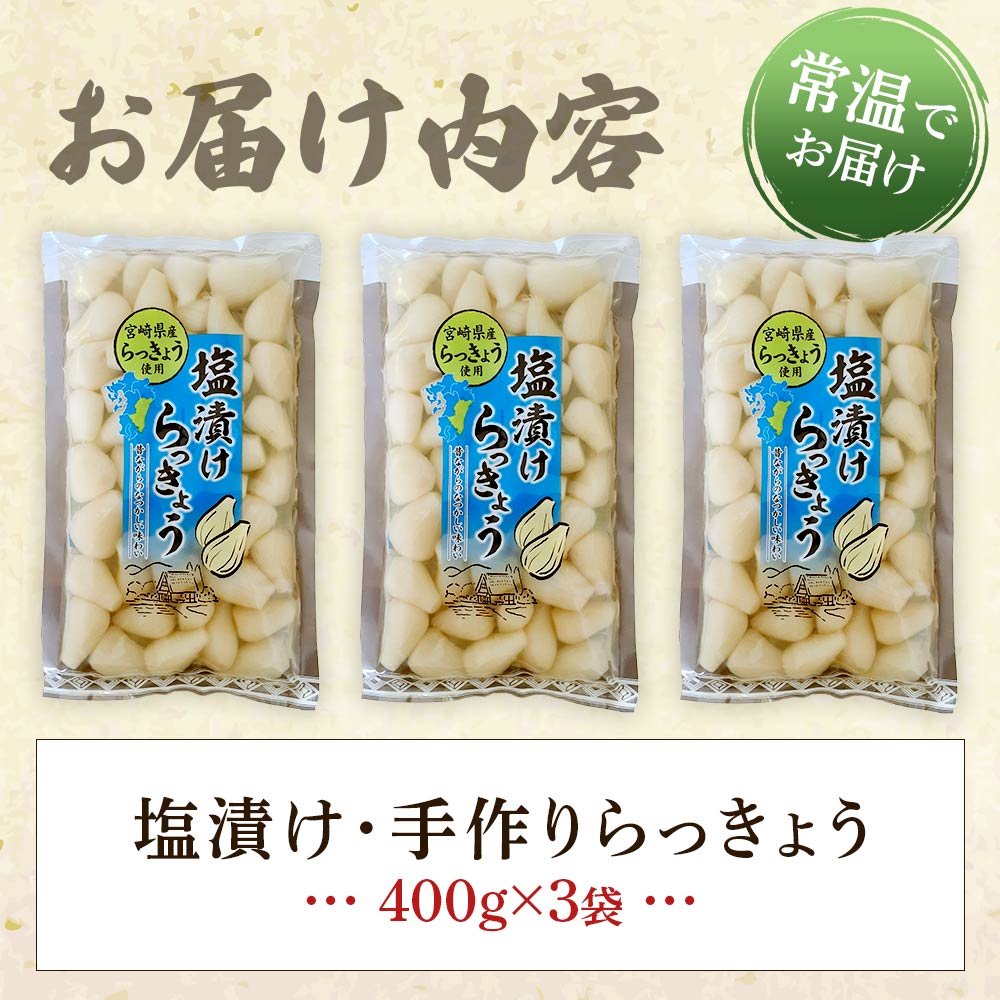 <手づくりらっきょう 400g×3袋セット>ラッキョウ 辣韭 漬物 国産 宮崎県産 【MI321-ko】【株式会社上沖産業】