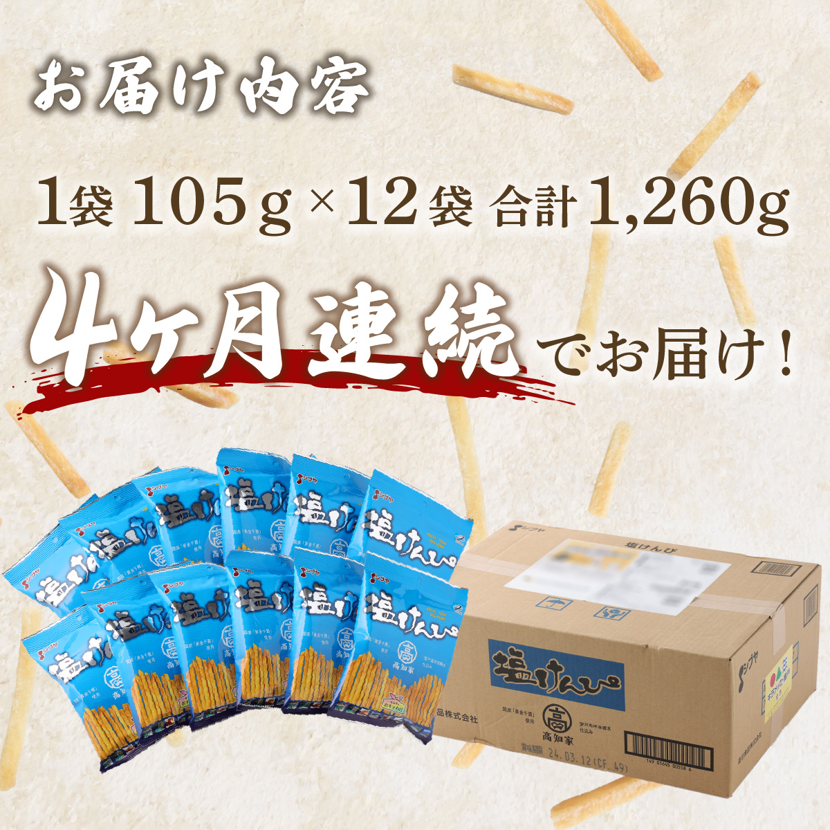 - 【4ヶ月連続定期便】 塩けんぴ 12袋小分けセット(計1260g) 【室戸海洋深層水使用】