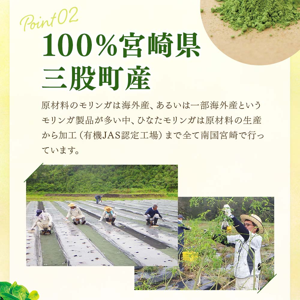 - <ひなたモリンガパウダー25g×2P>(計50g・25g×2個)宮崎県三股町産モリンガ使用「ひなたモリンガ」パウダー25g入り【MI305-ys】【吉原建設株式会社】
