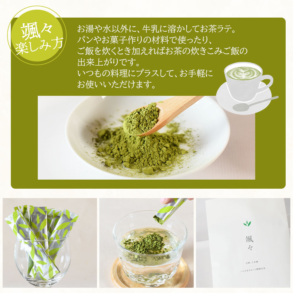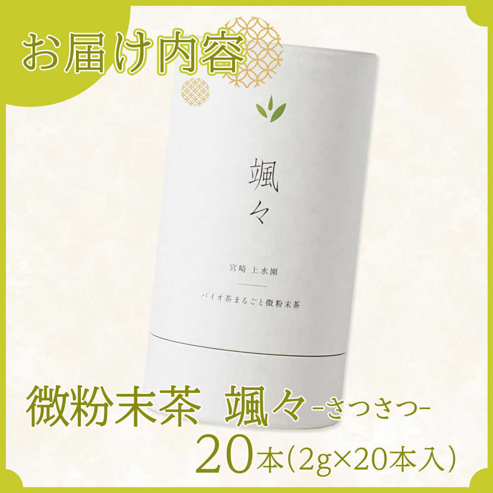 - <微粉末茶 颯々 20本>選べる 内容量 お茶 茶葉 tea 緑茶 製茶 茶粉末 アイス ティー スティック 持ち運び マグボトル お手軽 小分け 飲料類 水分補給 アレンジ お菓子 国産 宮崎県産 九州産 アウトドア お中元 敬老の日【MI395-km】【宮崎上水園】
