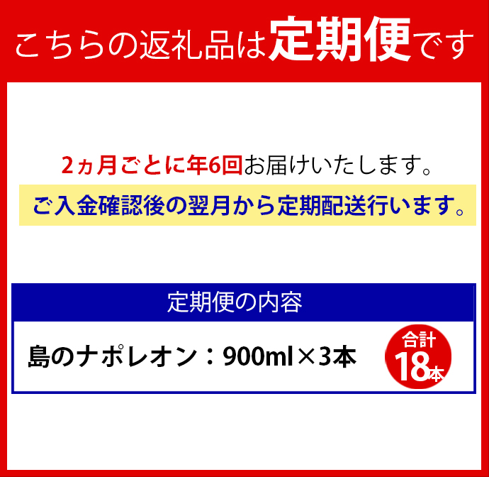 【定期便年6回】黒糖焼酎『島のナポレオン』900ml×3本セット 計18本 パック A-11 マイナビ
