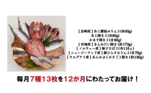《定期便》金目鯛が入った干物詰合せ(全7種13枚)丸富水産【12回お届け】