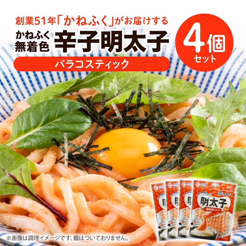 かねふく 無着色明太 バラコスティック 4個セット KKN0304