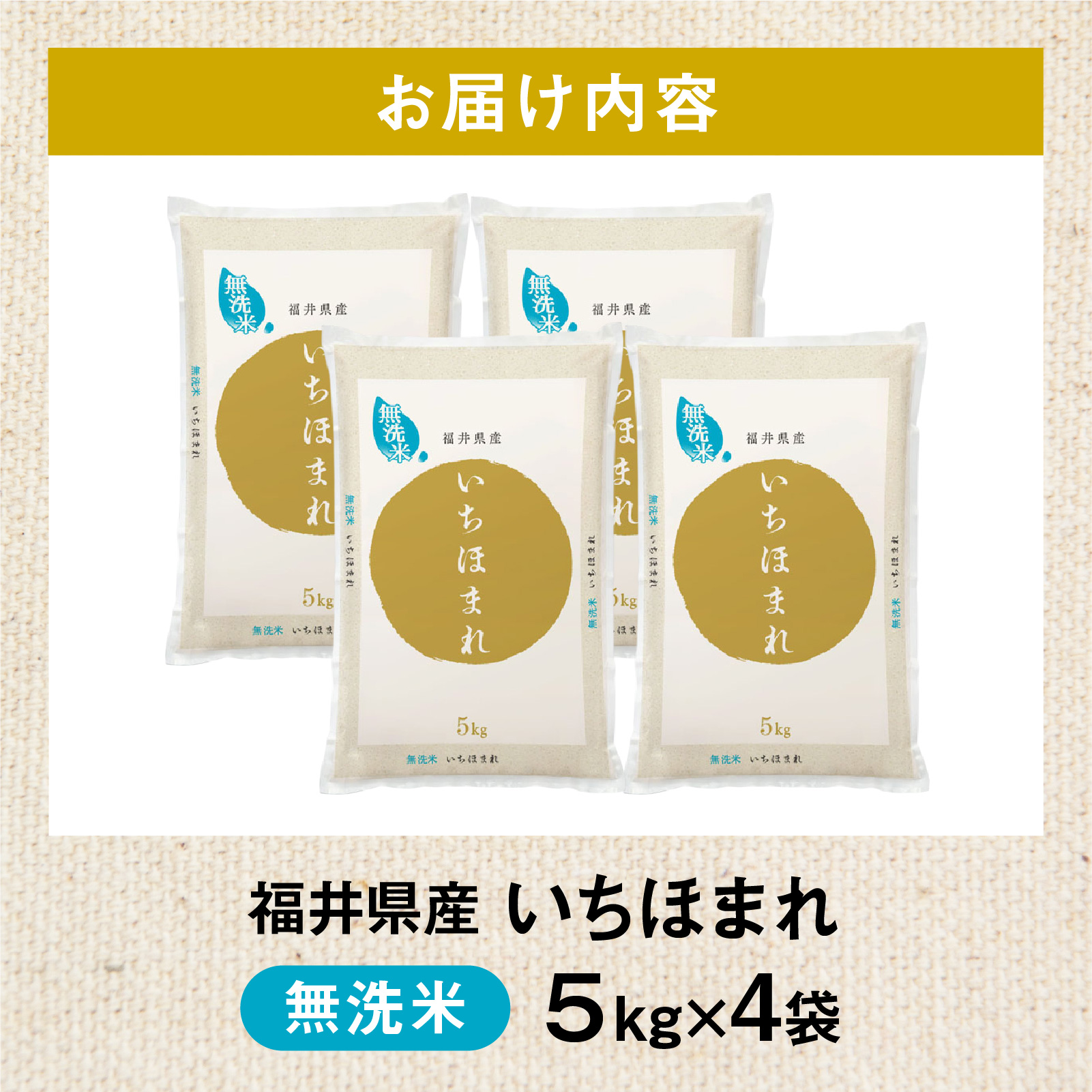 【令和7年産】福井が生んだブランド米「福井県産いちほまれ」【5kg 4袋 無洗米】 [F-014011] / 米 こめ お米 コメ ごはん ご飯 飯 送料無料 5kg 5キロ 20キロ 福井市 福井県