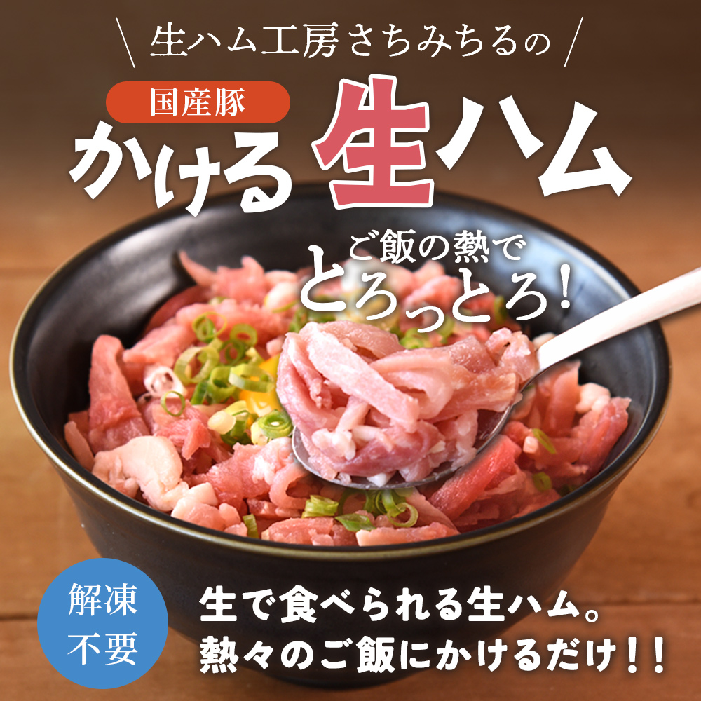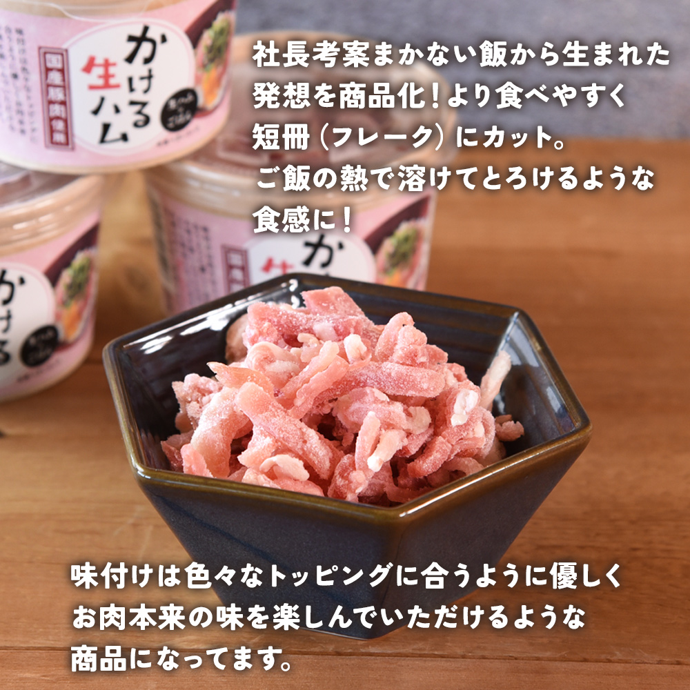 <【定期便】全6回連続 かける国産生ハム80g×4個×6回>国産 豚肉 お肉 生ハム 短冊 フレーク状生ハム トッピング 熱々ご飯 ご飯のお供 ごはん かけるだけ ズボラ飯 ユッケ サラダ パスタ ピザ パーティー おつまみ グルメ アレンジ おしゃれ【MI615-pl】【株式会社プラス】