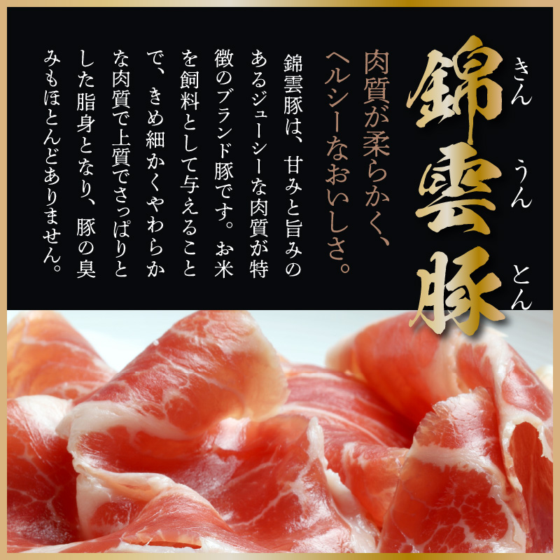 【ブランド豚肉】お米育ちの「錦雲豚」 ロース生ハム 3パック FN1305