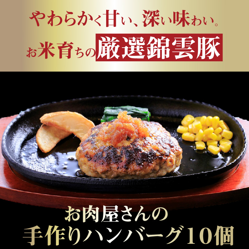 - 【ブランド豚肉】お米育ちの錦雲豚 お肉屋さんの手作りハンバーグ10個 FN0802