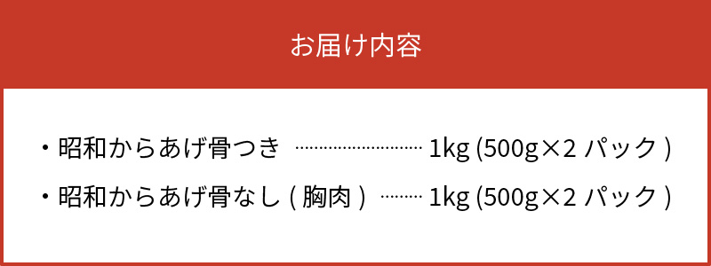 - 【世界の中津侍からあげ聖林】 昭和からあげセット2(骨付きブツ切り:1kg,骨なし胸肉:1kg) KH2201