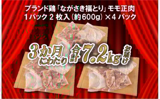 《定期便》ながさき福とり鶏肉モモだけセット(2.4kg)【3回お届け】