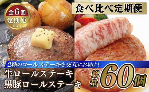 《定期便》【交互にお届け】黒豚ロールステーキ10個と牛ロールステーキ10個【6回】