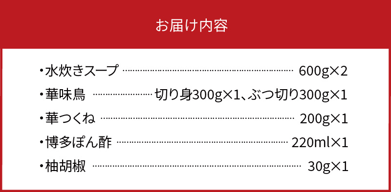 博多華味鳥 水たきセット(3〜4人前)柚子胡椒付き KTZ0203