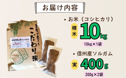 【令和7年産米】棚田米 こしひかり 精米 10kg と 信州産ソルガム 400g セット (7-93) | お米 米 コメ ご飯 ごはん コシヒカリ棚田 棚田米 セット そるがむ ソルガム グリテンフリー 長野県 飯山市